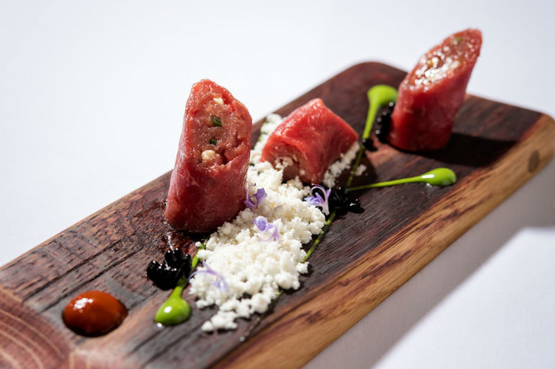 The indigenous Buša cow from Lika is part of the offering of authentic, organic foods on our menu. The meat of the organically fed cows is used in two other classic dishes. One of these is pašticada, a Croatian traditional slow-cooked beef dish prepared in a special rich sauce. To prepare it, we slow-cook the bottom round and eye round in vacuum and use the tougher pieces of beef for the broth and sauce for the pašticada. The meat is stuffed with locally produced pancetta and the finished meal is served with Roman gnocchi. The other classic beef dish is steak tartare, consisting of a beefsteak, or Buša cow fillet, served in a highly attractive and interactive manner, like any other dish on our menu.